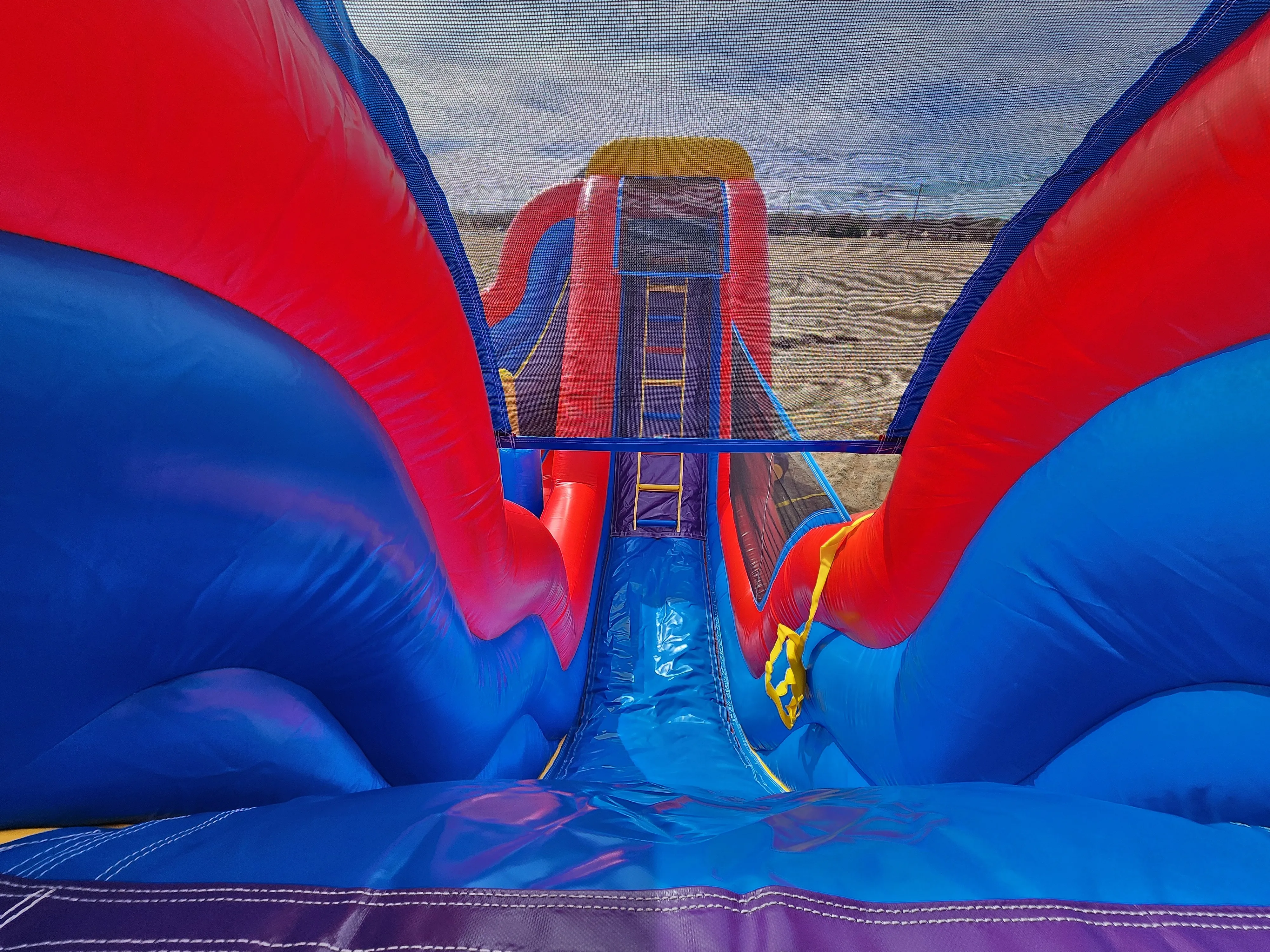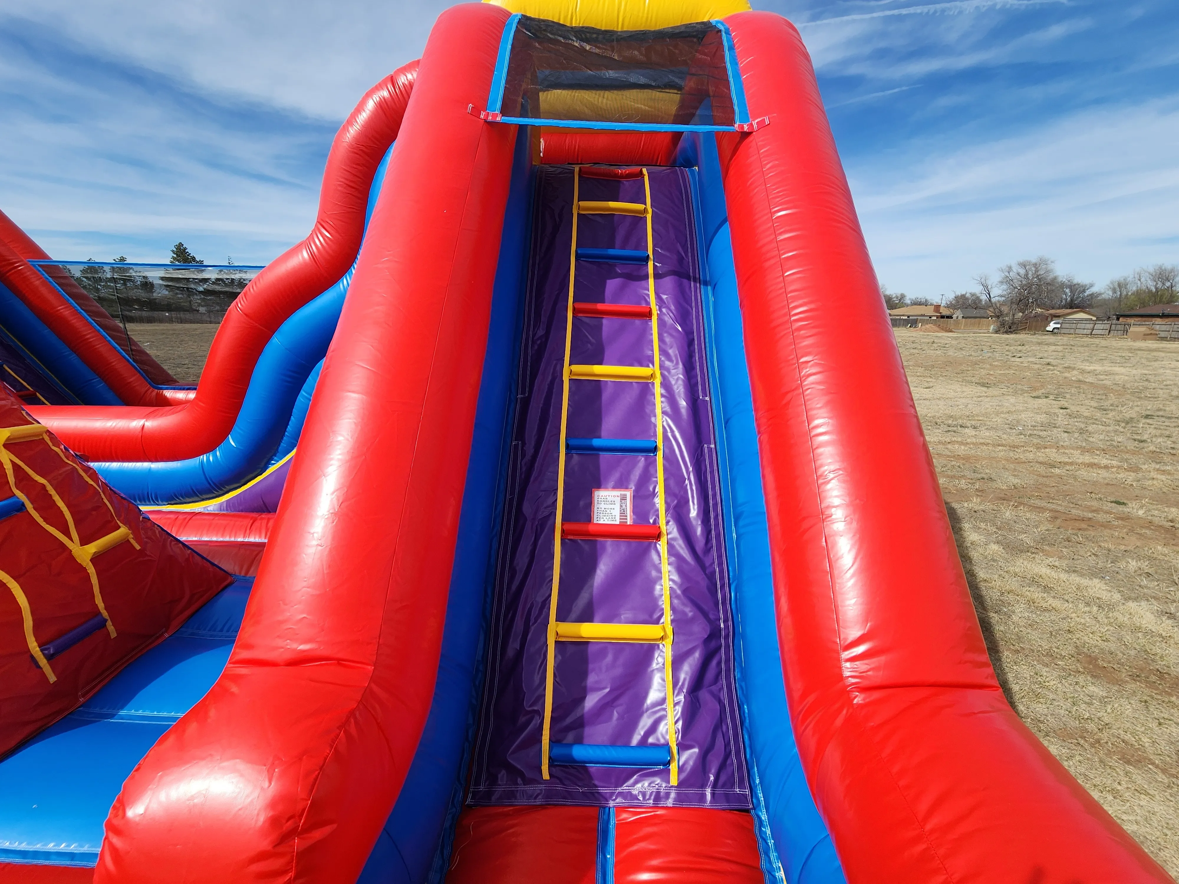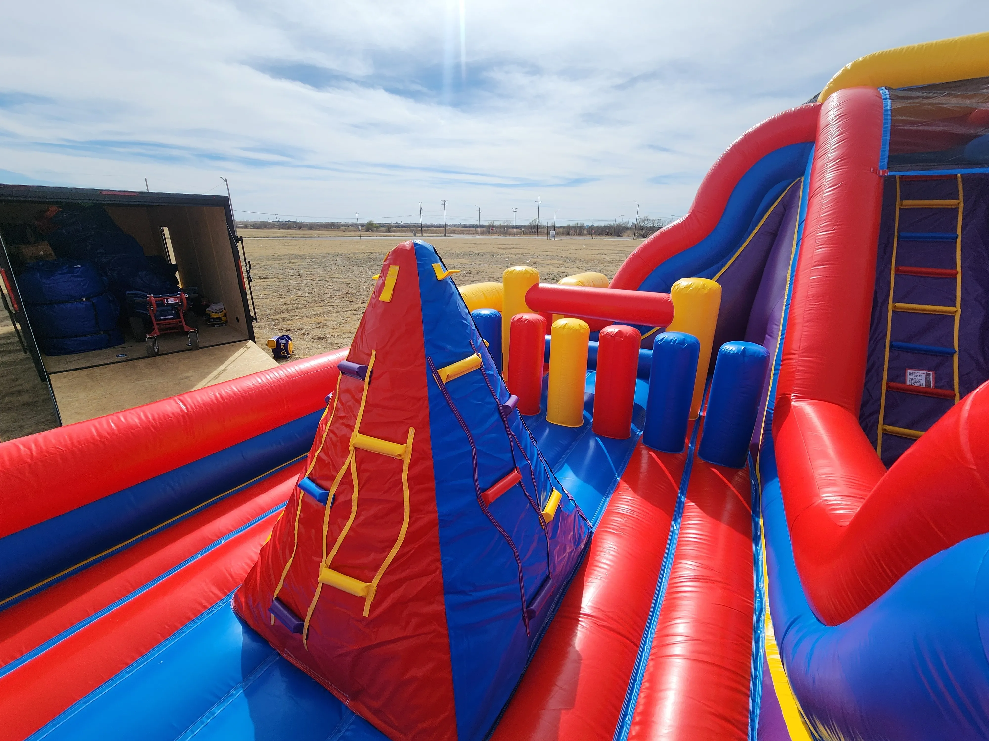 Perfect for birthday parties, school events, festivals, team-building activities, and larger gatherings, this obstacle course keeps kids and adults engaged with multiple challenges and thrilling slides on each side. The bright, colorful design instantly attracts attention while the spacious layout allows multiple participants to play at once — reducing wait times and maximizing fun.