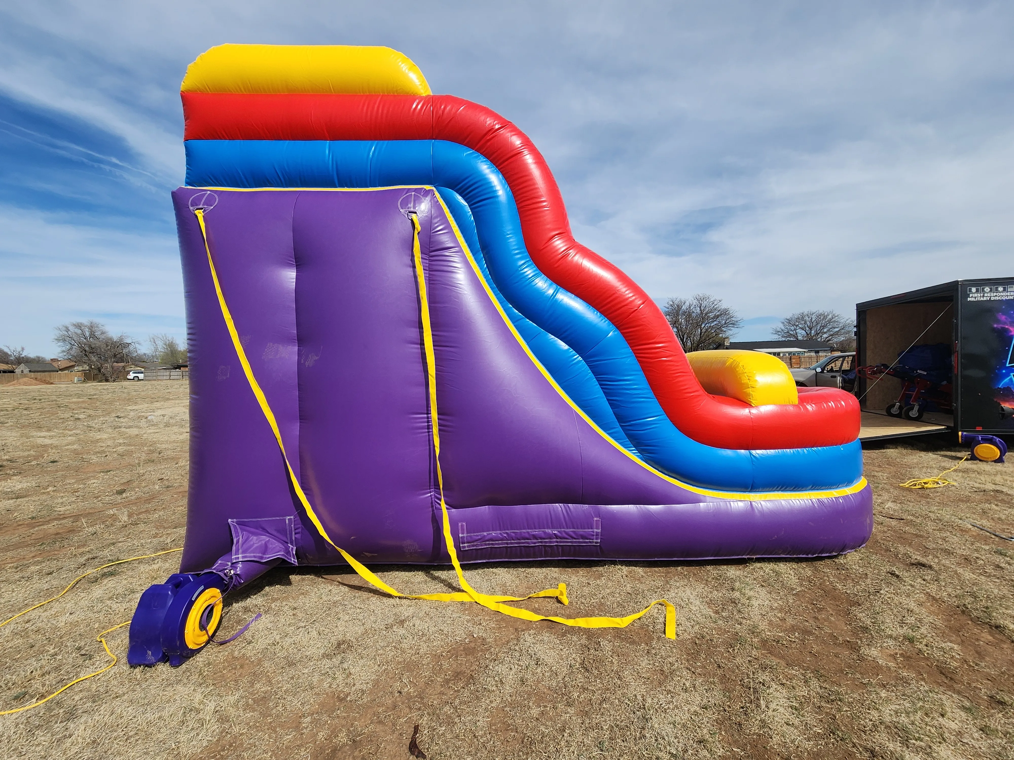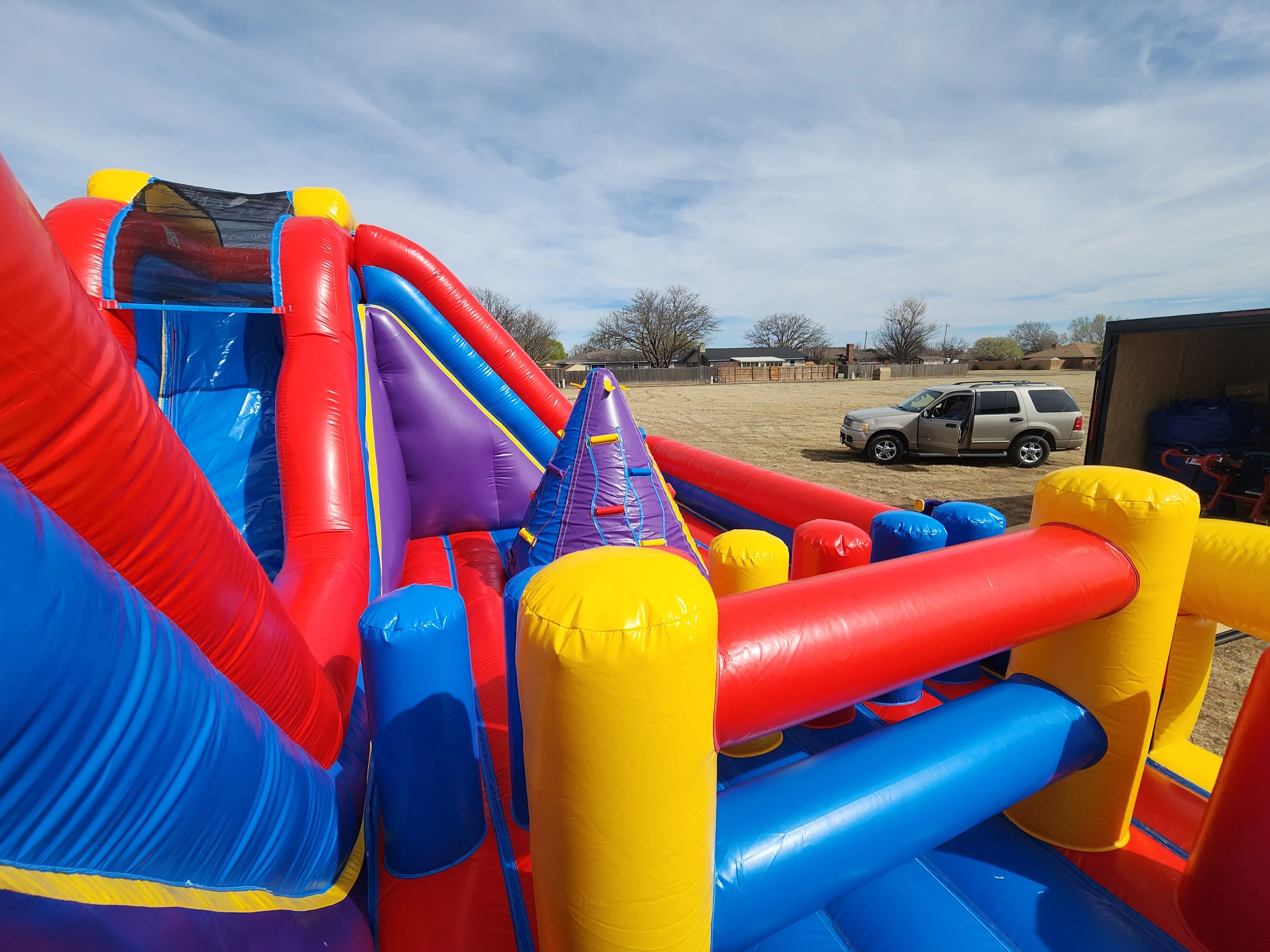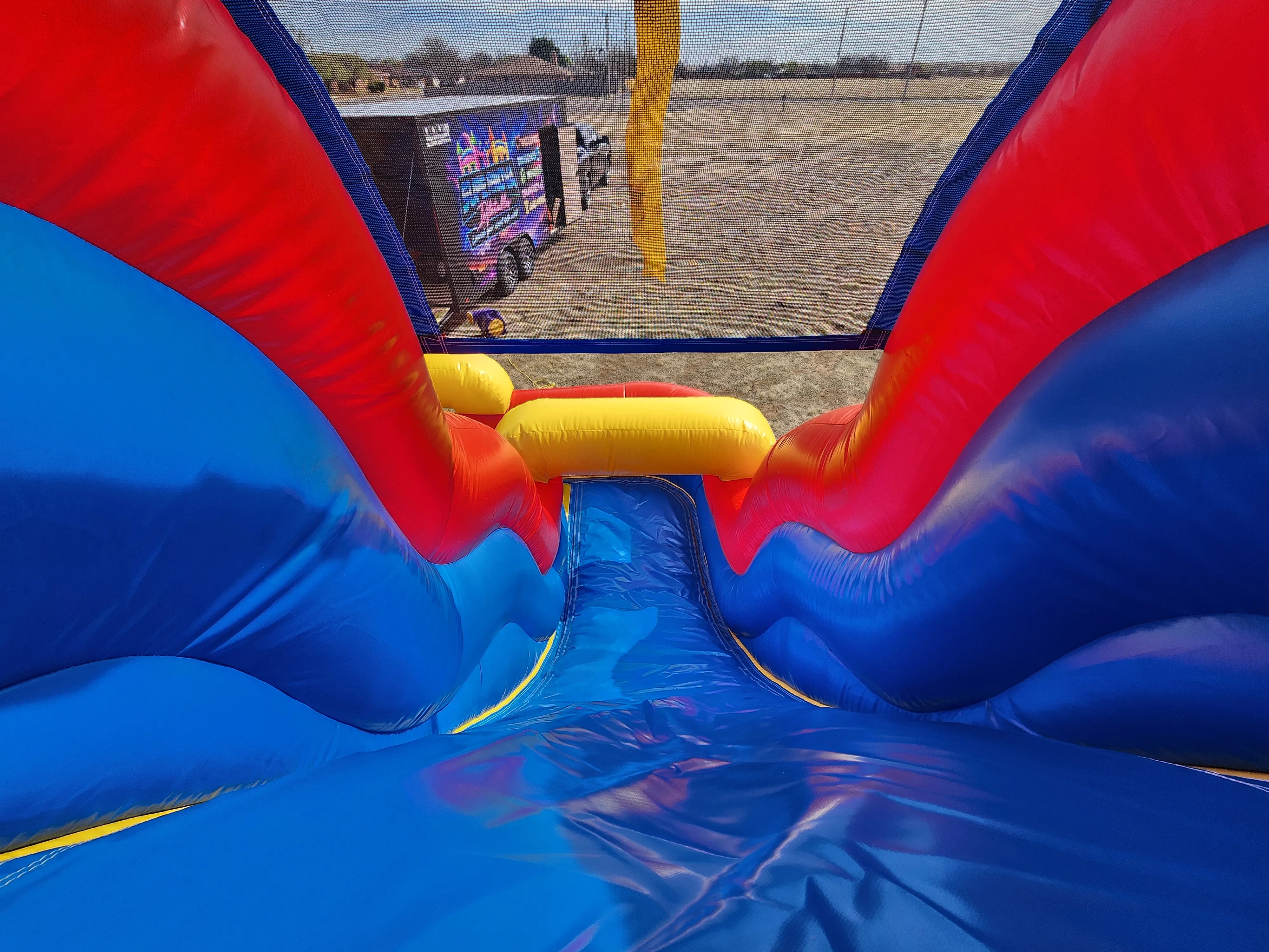 Perfect for birthday parties, school events, festivals, team-building activities, and larger gatherings, this obstacle course keeps kids and adults engaged with multiple challenges and thrilling slides on each side. The bright, colorful design instantly attracts attention while the spacious layout allows multiple participants to play at once — reducing wait times and maximizing fun.