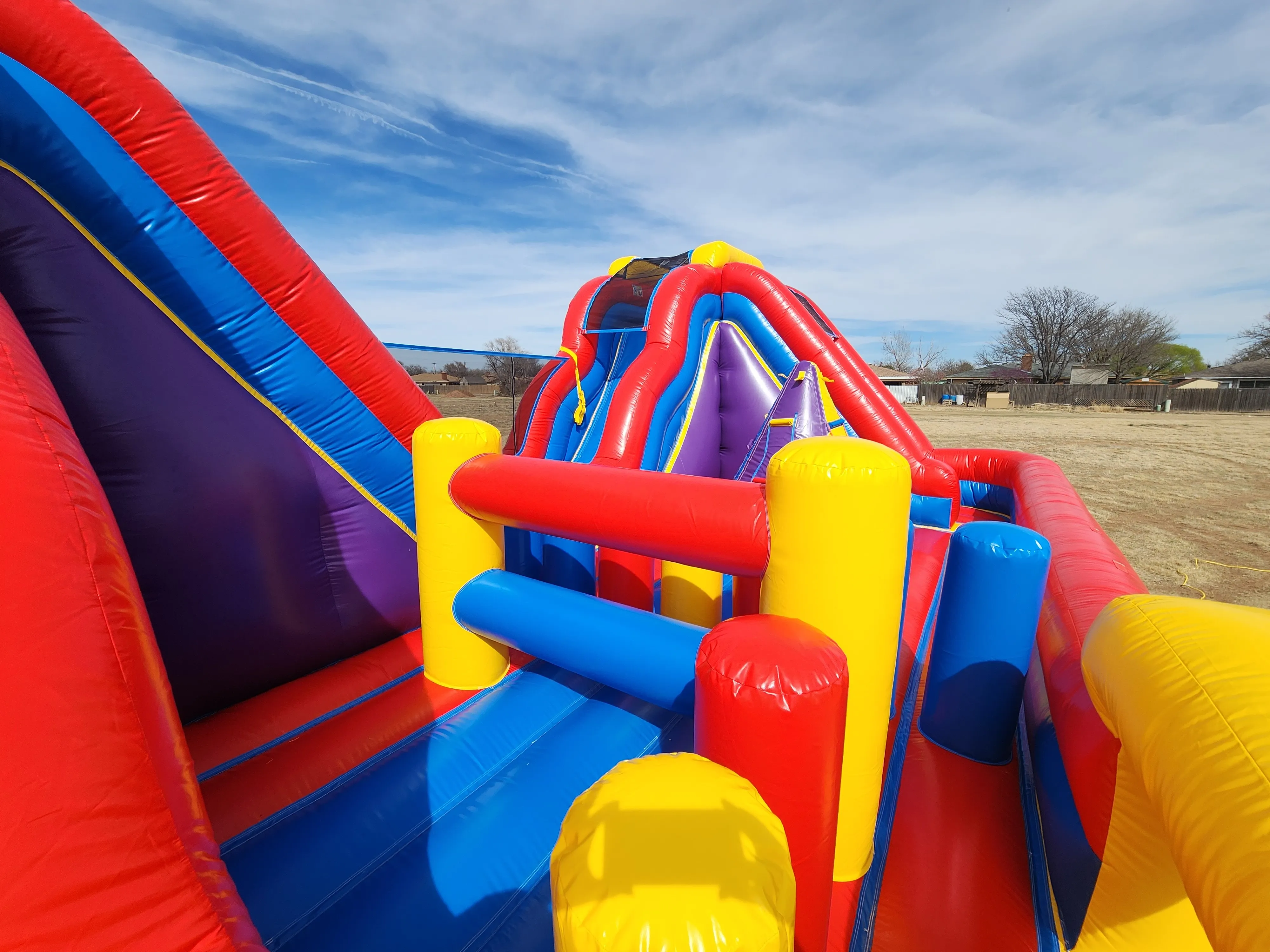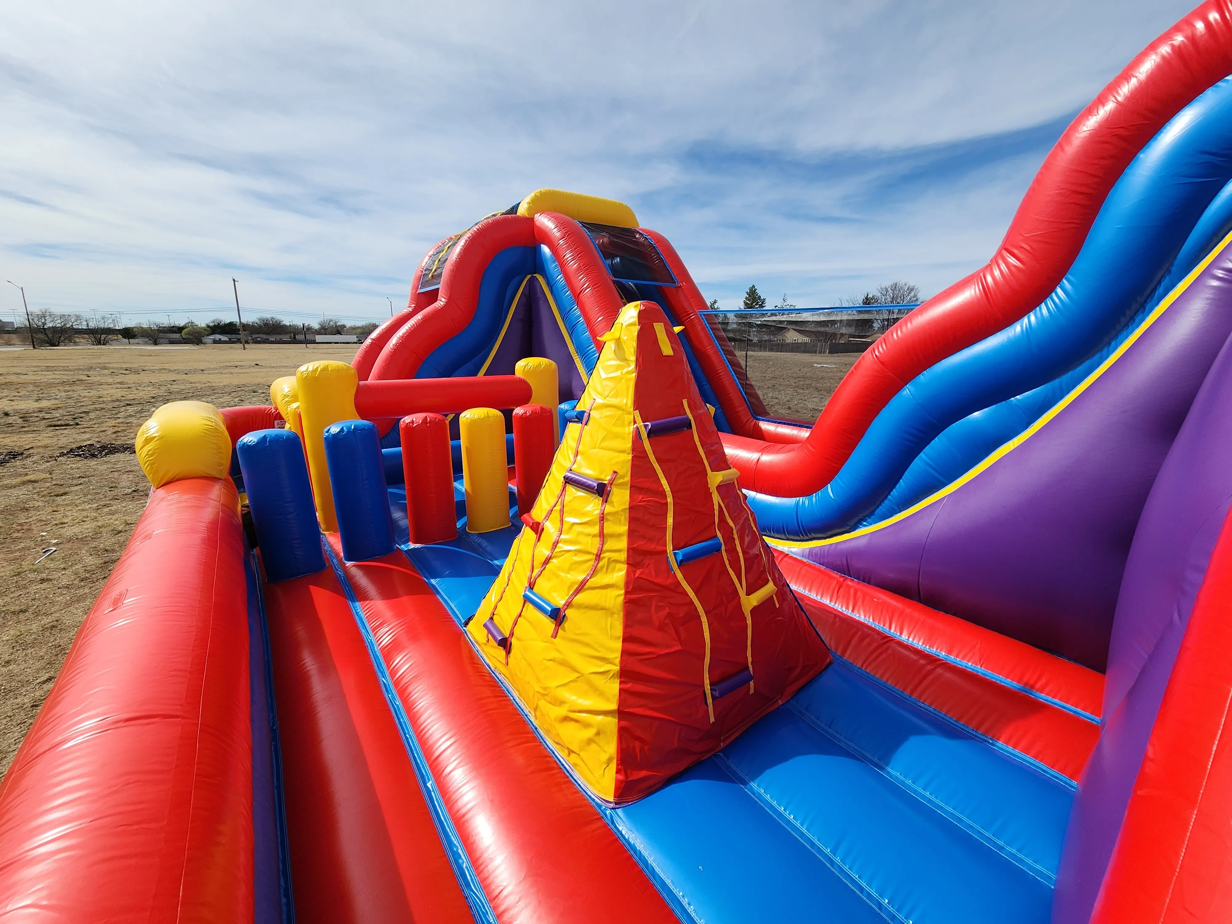 Take your event to the next level with our exciting Dual Lane Obstacle Course! Designed for high-energy fun and friendly competition, this inflatable features two racing lanes where participants can climb, bounce, and slide their way to victory.